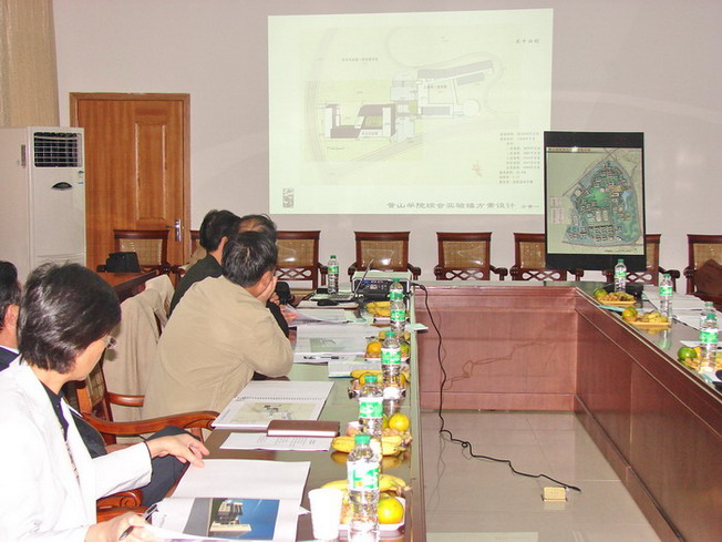 2008年10月11日下午,黄山市城市规划局在黄山学院逸夫图书馆主持召开了黄山学院综合实验楼设计方案评审会,黄山学院党委书记汪良发、院长汪建利,省教育厅处长赵蕴铭、省建筑设计院、合肥建筑设计院、黄山市建筑设计院的领导和专家出席了评审会。